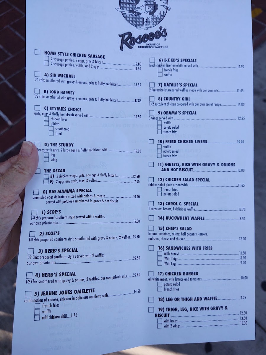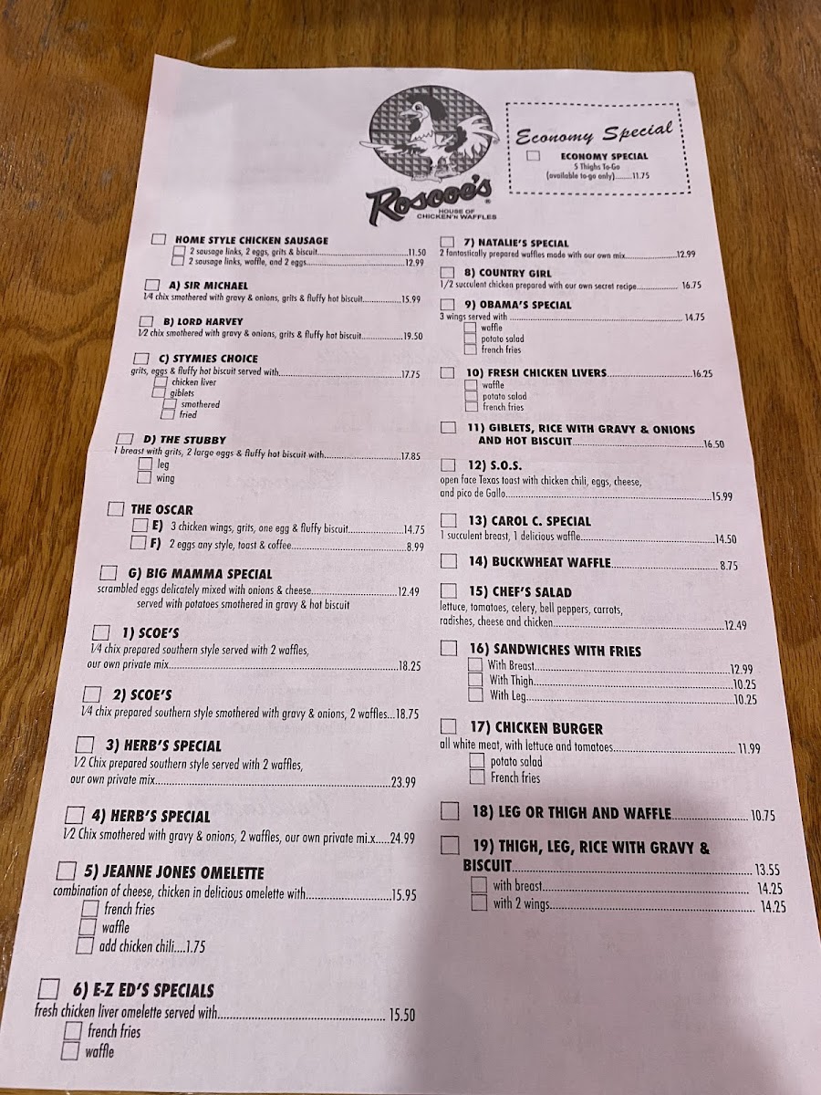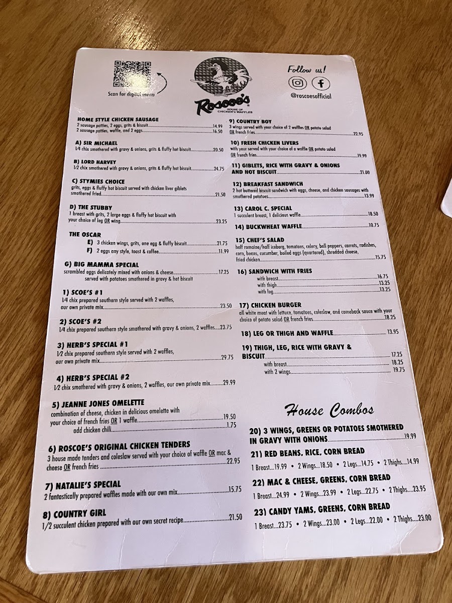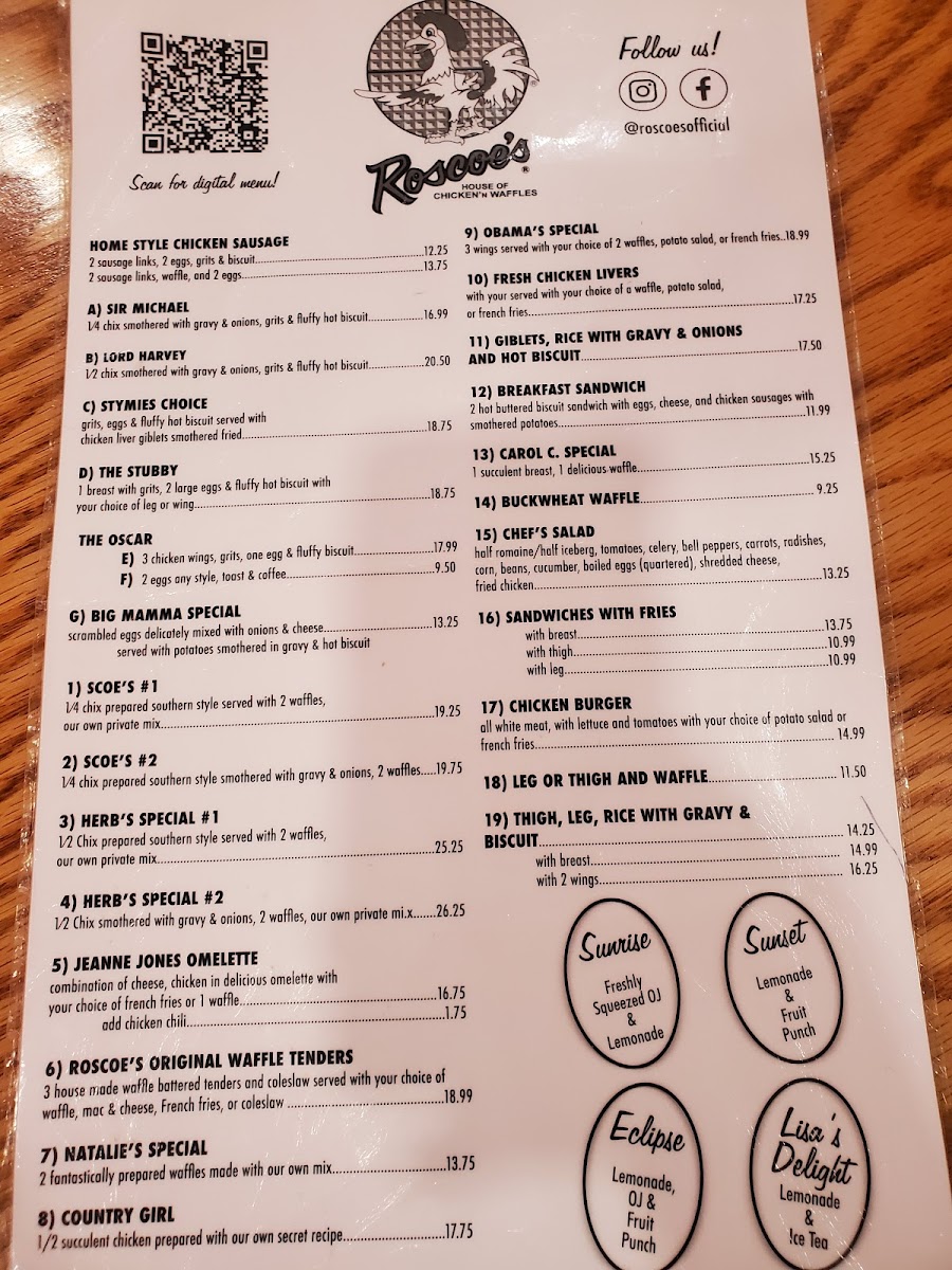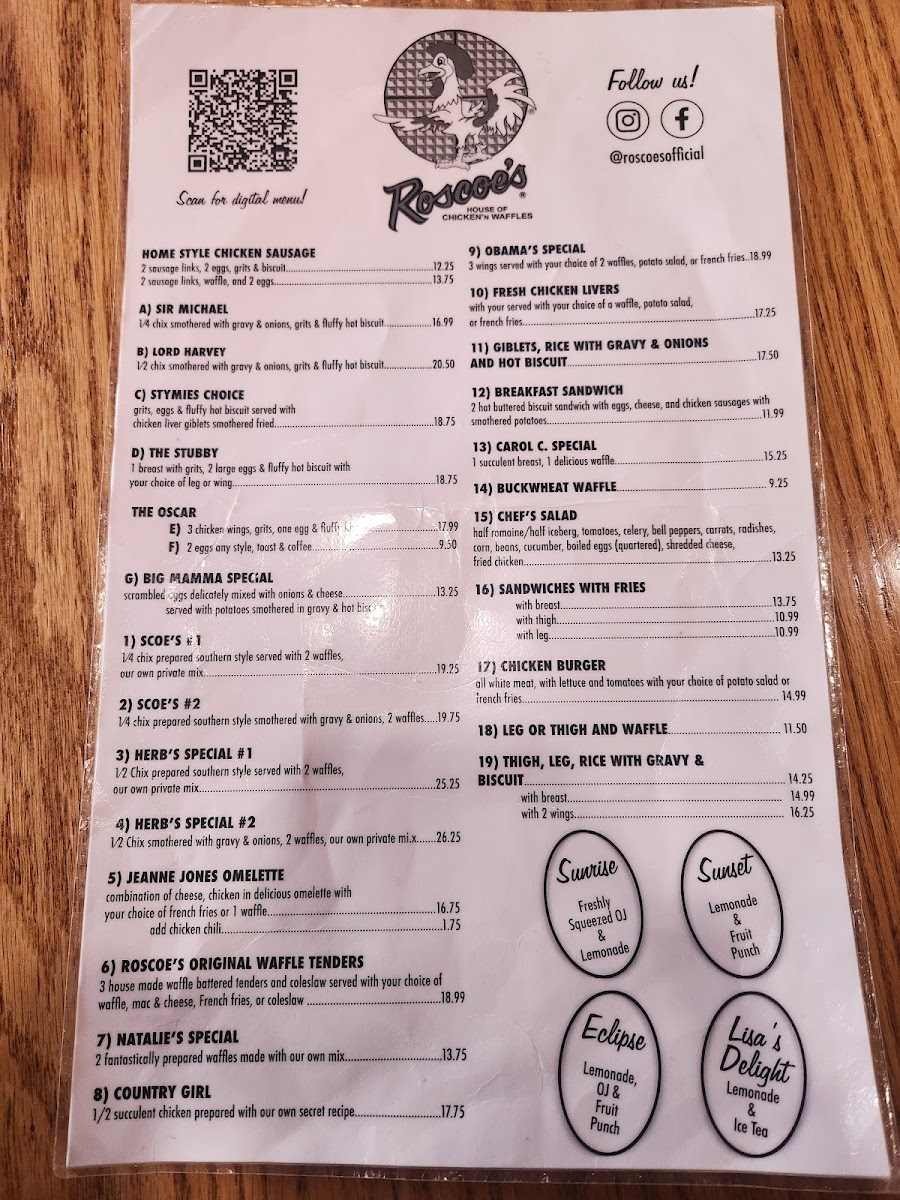 Don't miss out on their mouthwatering sides, such as mac and cheese and candy yams, complementing your meal perfectly. Whether you're indulging for breakfast, lunch, or dinner, Roscoe's delivers a warm and inviting experience, making each visit memorable.